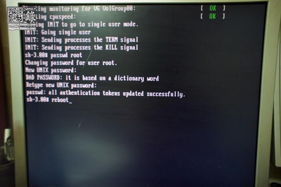 [LINUX] ๋ฆฌ๋ ์ค root ์ํธ๋ฅผ ๋ถ์คํ์ ๋ root ๊ณ์ ์ด๊ธฐํ