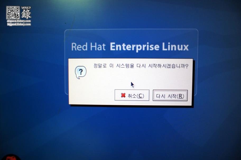 reboot์ด๋ผ๊ณ ์ ๋ ฅํ๋ฉด ์ฌ๋ถํ ๋๋ค.