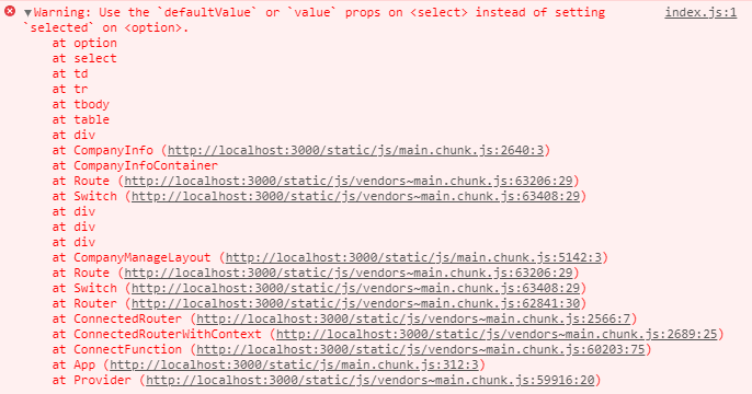Warning: Use the `defaultValue` or `value` props on <select> instead of setting `selected` on <option>.