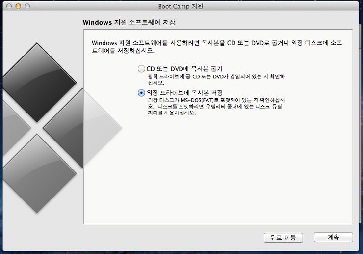 Mac bootCamp ์ธ์ฅ CD๊ฐ ์๋ ๋งฅ๋ถ์์๋ ์ธ์ฅ๋๋ผ์ด๋ธ์ ๋ณต์ฌ๋ณธ ์ ์ฅ ์ ํ.