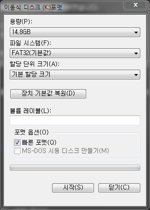 ์ด๋์ ๋์คํฌ ํฌ๋งท ์์. 16G๋ฉ๋ชจ๋ฆฌ์ ๋ด์๋ณด์๋๋ฐ๋ ์ ๋จ.
