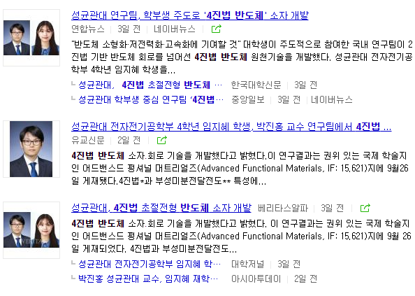 3μ§λ² λ°λ체 μμλ₯Ό κ°λ°ν μ±κ· κ΄λ λ°μ§ν κ΅μνμ νλΆμμ μ°κ΅¬ μ£Όλλ‘ 4μ§λ² λ°λ체 μμκ° κ°λ°λλ€.