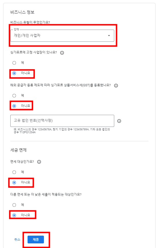 ์ ๋์ผ์ค๋ฅผ ํตํ ์์ต ์ฐฝ์ถ์ ์์ด ์ธ๊ธ ์ ๋ณด์ ์ ์ถ์ ๋งค์ฐ ์ค์ํ ๋ถ๋ถ์ ๋๋ค. ํนํ ์ฑ๊ฐํฌ๋ฅด์ ๊ฑฐ์ฃผํ๋ ์ฌ์ฉ์์ ๊ฒฝ์ฐ, ์ ํํ๊ณ ์ ์ํ ์ธ๊ธ ์ ๋ณด ์ ์ถ์ ์์ต ์ง๊ธ์ ์ง์ฐ์ ๋ฐฉ์งํ๊ณ ์์ฒ์ง์๋๋ ์ธ๊ธ์ ์ ํ์ฑ์ ๋ณด์ฅํฉ๋๋ค. ์ด์ ๋ฐ๋ผ Google ๊ฒฐ์ ์ผํฐ๋ฅผ ํตํ ์ธ๊ธ ์ ๋ณด ์ ์ถ ์ ์ฐจ๋ฅผ ์ฒ ์ ํ ์ดํํ๋ ๊ฒ์ด ์ค์ํฉ๋๋ค.