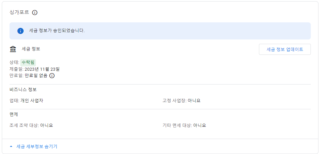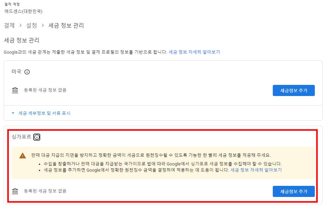 Google ์ ๋์ผ์ค๋ ์ ์ธ๊ณ ์๋ง์ ์ฌ์ฉ์๋ค์ด ์ด์ฉํ๋ ํ๋ซํผ์ด๋ฉฐ, ๊ทธ ์ค ํ๊ตญ์์ ํ๋ํ๋ ์ฌ์ฉ์๋ค๋ ์๋น์ ์์ต๋๋ค. ์ฑ๊ฐํฌ๋ฅด ์ธ๊ธ ์ ๋ณด๋ฅผ ์ถ๊ฐํ๋ ๊ณผ์ ์ ์ฒ์ ์ ํ๋ ์ฌ์ฉ์์๊ฒ ๋ณต์กํ๊ฒ ๋๊ปด์ง ์ ์์ผ๋, ์ด๋ ํ์์ ์ธ ์ ์ฐจ์ ๋๋ค. ์ฑ๊ฐํฌ๋ฅด ์ธ๊ธ ์ ๋ณด๋ฅผ ์ ํํ ์ ์ถํจ์ผ๋ก์จ ํ๋งค ๋๊ธ ์ง๊ธ ์ง์ฐ์ ๋ฐฉ์งํ๊ณ ์ฌ๋ฐ๋ฅธ ์ธ๊ธ์ด ์ง์๋ ์ ์๋๋ก ํฉ๋๋ค. ์ฑ๊ฐํฌ๋ฅด ์ธ๊ธ ์ ๋ณด ์ถ๊ฐ ๊ณผ์ ์ ์ค์ ๊ฒฝํ์ ๋ฐํ์ผ๋ก ์๋ดํด ๋๋ฆฝ๋๋ค.