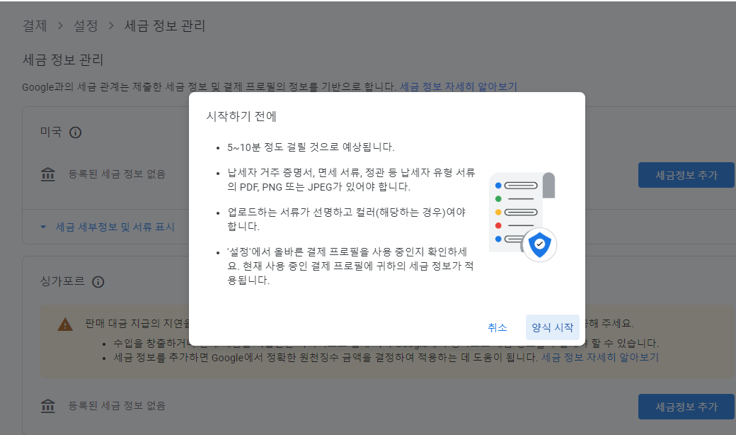 Google ์ ๋์ผ์ค๋ ์ ์ธ๊ณ ์๋ง์ ์ฌ์ฉ์๋ค์ด ์ด์ฉํ๋ ํ๋ซํผ์ด๋ฉฐ, ๊ทธ ์ค ํ๊ตญ์์ ํ๋ํ๋ ์ฌ์ฉ์๋ค๋ ์๋น์ ์์ต๋๋ค. ์ฑ๊ฐํฌ๋ฅด ์ธ๊ธ ์ ๋ณด๋ฅผ ์ถ๊ฐํ๋ ๊ณผ์ ์ ์ฒ์ ์ ํ๋ ์ฌ์ฉ์์๊ฒ ๋ณต์กํ๊ฒ ๋๊ปด์ง ์ ์์ผ๋, ์ด๋ ํ์์ ์ธ ์ ์ฐจ์ ๋๋ค. ์ฑ๊ฐํฌ๋ฅด ์ธ๊ธ ์ ๋ณด๋ฅผ ์ ํํ ์ ์ถํจ์ผ๋ก์จ ํ๋งค ๋๊ธ ์ง๊ธ ์ง์ฐ์ ๋ฐฉ์งํ๊ณ ์ฌ๋ฐ๋ฅธ ์ธ๊ธ์ด ์ง์๋ ์ ์๋๋ก ํฉ๋๋ค. ์ฑ๊ฐํฌ๋ฅด ์ธ๊ธ ์ ๋ณด ์ถ๊ฐ ๊ณผ์ ์ ์ค์ ๊ฒฝํ์ ๋ฐํ์ผ๋ก ์๋ดํด ๋๋ฆฝ๋๋ค.