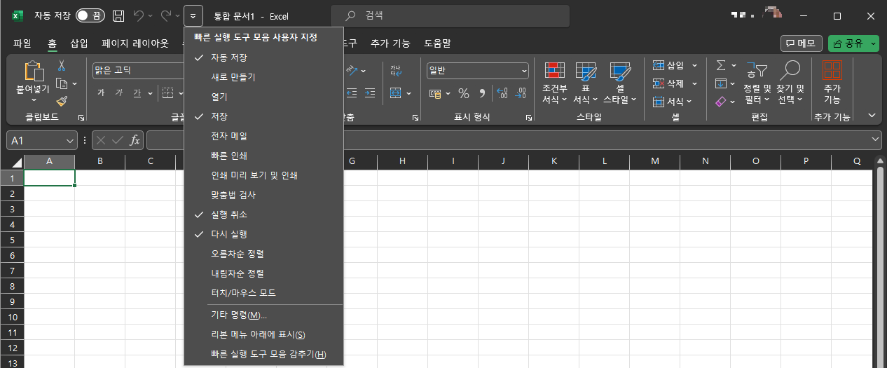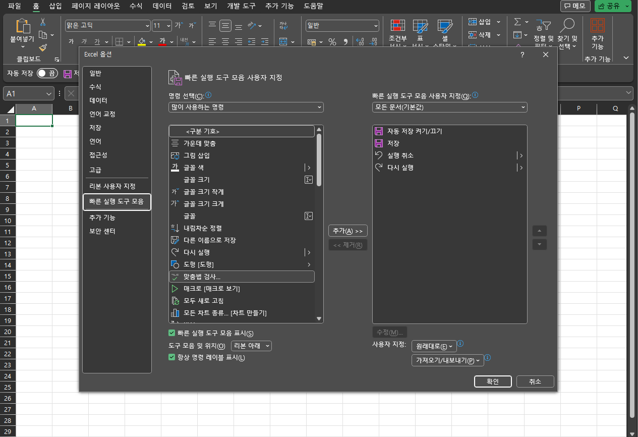 - ๋๋ง์ ๋จ์ถํค ๋ง๋ค๊ธฐ: ์ํ๋ ๊ธฐ๋ฅ์ ์ถ๊ฐํ๋ ค๋ฉด ๋น ๋ฅธ ์คํ ๋๊ตฌ ๋ชจ์ ์ค์ ํ๋ฉด์์ ๋ฆฌ๋ณธ ๋ฉ๋ด ์๋๋ก ์ด๋ํด์ผ ํฉ๋๋ค. ๊ฑฐ๊ธฐ์ ์ฌ์ฉํ๊ณ ์ ํ๋ ๊ธฐ๋ฅ์ ์ฐพ์ ํด๋ฆญํฉ๋๋ค.