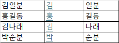| ์ด๋ฆ | ์ฑ | ์ด๋ฆ |