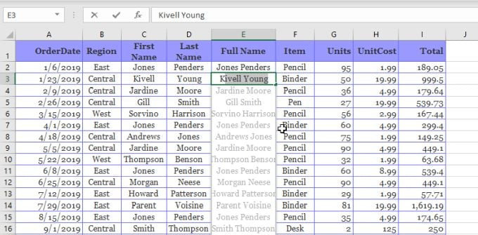 ๋จผ์ 'ํ'๊ณผ '๊ธธ๋'์ ์ ๋ ฅํ๊ณ Ctrl + E๋ฅผ ๋๋ฅด๋ฉด ์์ ์ด ๋๋จธ์ง ์ด๋ฆ๋ค์ ์ฑ๊ณผ ์ด๋ฆ์ผ๋ก ๋ถ๋ฆฌํ์ฌ ์ฑ์ ๋ฃ์ต๋๋ค.