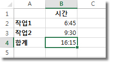 =SUM(B2:B3)μ΄ λ©λλ€. - κ²°κ³Όλ λμΌνκ² 16μκ° 15λΆμ λλ€.