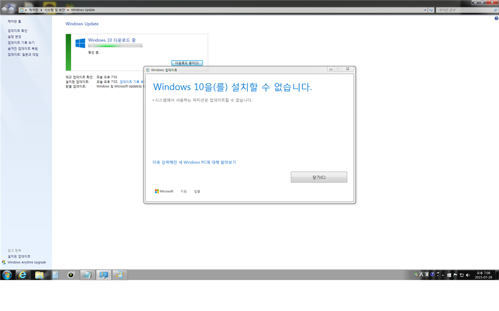 μλμ° 10 μ λ°μ΄νΈ μ€μΉ μ 'μμ€ν μμ μ¬μ©νλ νν°μ μ μ λ°μ΄νΈ ν μ μμ΅λλ€' ν΄κ²°λ°©λ²