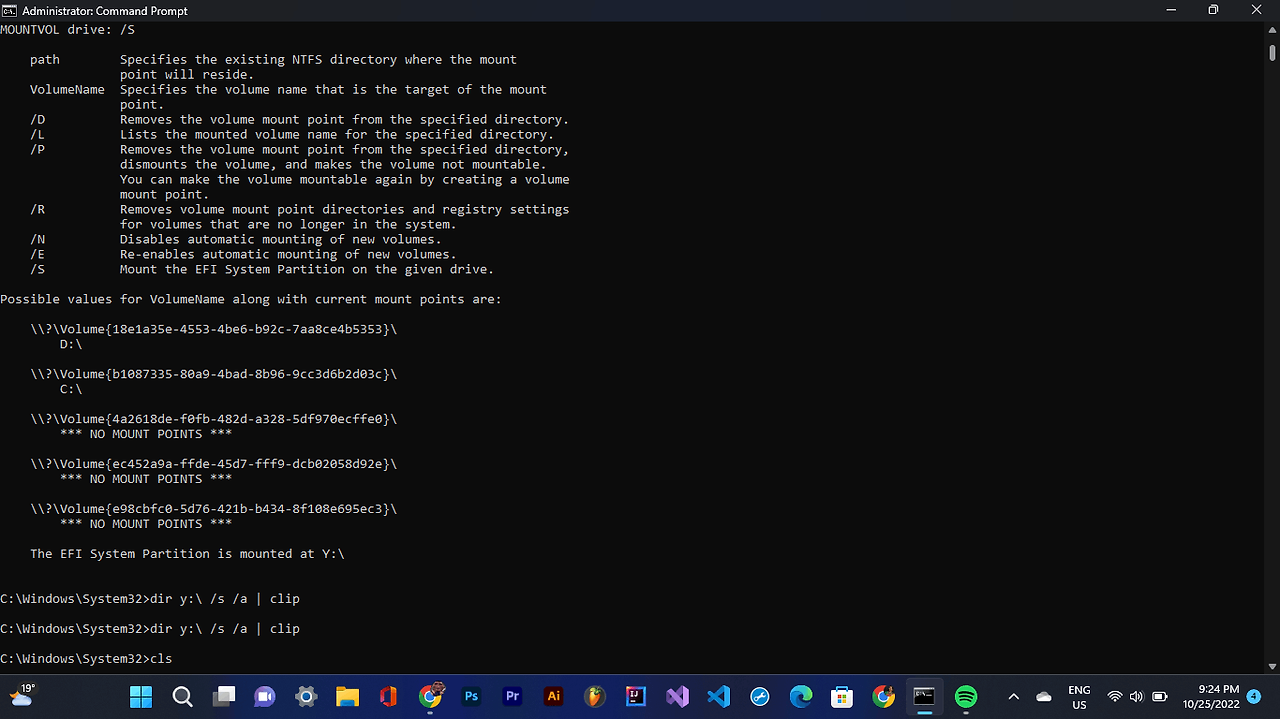 λ°μ΄νΈ ν μ μμ΅λλ€"λΌλ μ€λ₯κ° λ°μνλ©°, mountvol y: /s λͺ
