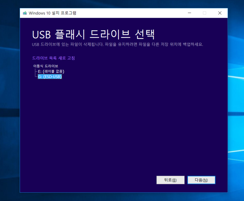 ์ด๋์ ๋๋ผ์ด๋ธ ์ค ์ฌ์ฉํ USB๋ฅผ ์ ํํฉ๋๋ค.