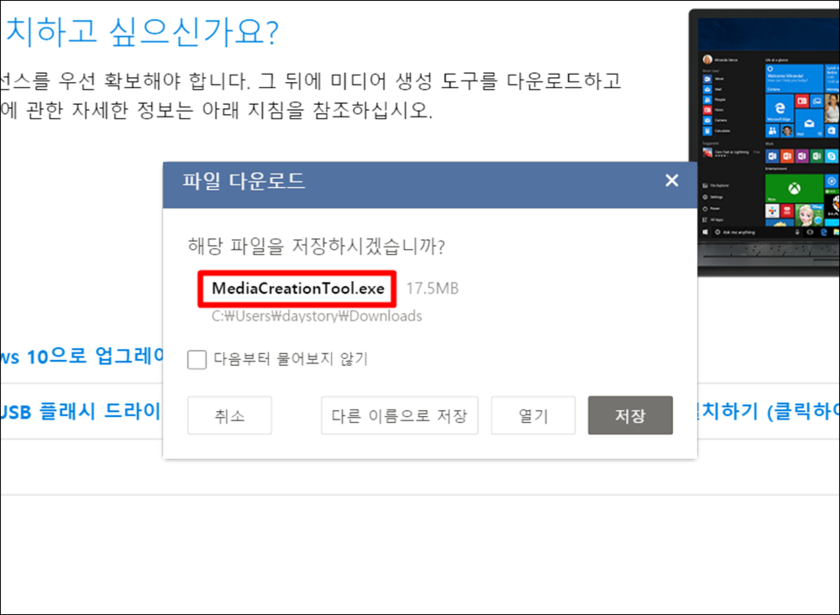 ์ด๋ ๋ค์ด ๋ฐ๋ MediaCreationTool์ ์ฉ๋์ ๋๋ต 17MB ์ ๋๋ฐ์ ๋์ง ์์ต๋๋ค.