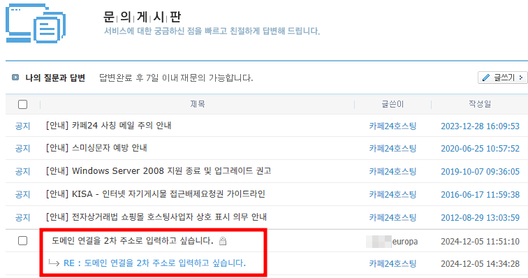 μ΄λ κ² DNS μ€μ μ μλ£ν ν, κ³ κ°μΌν°μ ν΄λΉ λ΄μ©μ μμ²νμ¬ λ³κ²½νλλ‘ νλ©΄ λ©λλ€.