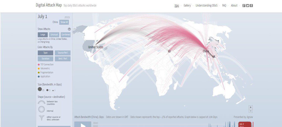 Digital attak map์ ๋ฐ๋ฅด๋ฉด ํ์ฝฉ ์ค๊ตญ๋ฐ ํธ๋ํฝ์ด ๋ฏธ์ฃผ๋ฅผ ๊ฐํ ์ค์ธ๋ฏ.
