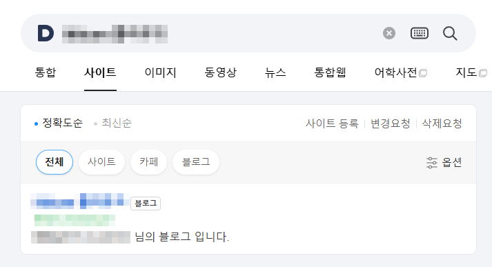 ๋ํ, ์ต์ ํ ๊ธฐ๊ฐ์ด ์ง๋๊ณ ๋๋ฉด ๋ธ๋ก๊ทธ๊ฐ ์ ์์ ์ผ๋ก ๋ค์๊ฒ์์ ๋ ธ์ถ๋๋์ง ์ฌ๋ถ๋ฅผ ํ์ธํ ์ ์์ต๋๋ค. ๊ฒ์์ฐฝ์ ๋ธ๋ก๊ทธ ์ฃผ์๋ ์ด๋ฆ์ ์ ๋ ฅํ์ฌ ‘์ฌ์ดํธ ํญ’์ ๋ด ๋ธ๋ก๊ทธ๊ฐ ํ์๋๋ค๋ฉด ์์ ํ ์ํ๋ก ๋ณผ ์ ์์ผ๋, ๋ง์ฝ ์ฌ์ดํธ ํญ์์ ๋ณด์ด์ง ์๋๋ค๋ฉด ์ ํ์ง ๋ธ๋ก๊ทธ๋ก ํ๋จ๋์ด ๋ ์ด์ ๋ ธ์ถ๋์ง ์๊ฒ ๋ฉ๋๋ค.