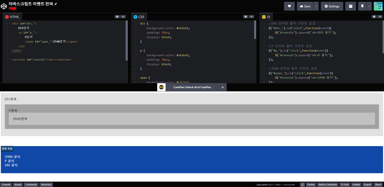 ์ด์ jsFiddle์ ์์๋ก ๋ค์ด ์ข ๋ ์์ธํ ์์๋ณด๋๋ก ํ๊ฒ ์ต๋๋ค.