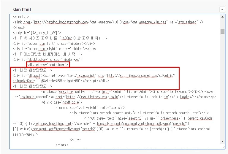 <div id="dtopAd">๋ผ๊ณ ์ฐ์ฌ ์๋ ๋ถ๋ถ์ divํ๊ทธ์ id๋ก dtopAd๋ฅผ ๋ถ์ฌํ๋๋ฐ์.