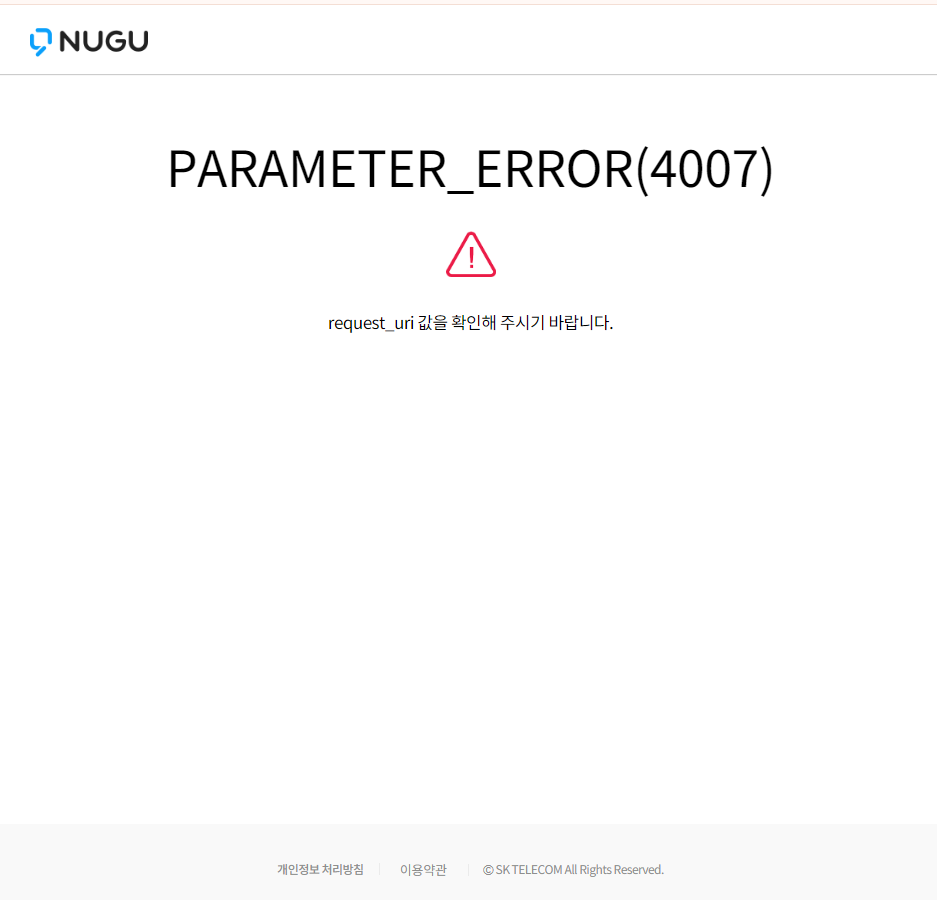 NUGU FLO, SK T์์ด๋, ๋ก๊ทธ์ธ ์ค๋ฅ, parameter_error 4007, request_uri ์ค๋ฅ, ํด๋ผ์ด์ธํธ ID, ํด๋ผ์ด์ธํธ ์ํฌ๋ฆฟ, ๋ฆฌ๋๋ ์ URI, URL ํ๋ผ๋ฏธํฐ, ์ ํ๋ฆฌ์ผ์ด์ ์ค์ , ๋ก๊ทธ์ธ ๋ฌธ์ ํด๊ฒฐ