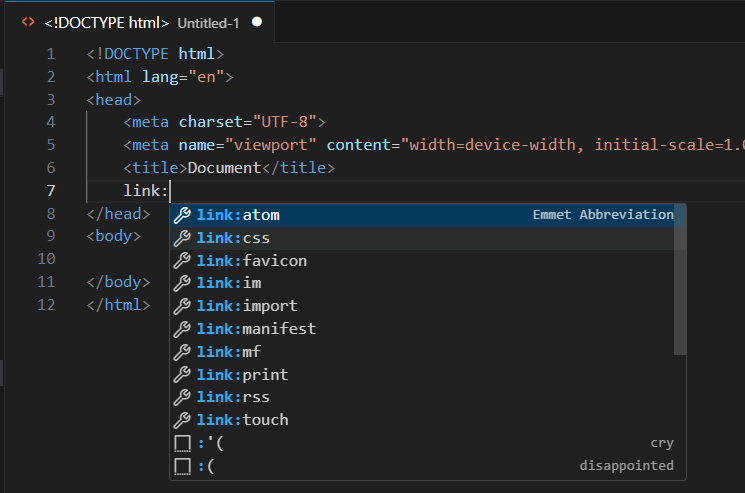 !):!๋ฅผ ์ ๋ ฅํ๊ณTabํค๋ฅผ ๋๋ฅด๋ฉด ๊ธฐ๋ณธ HTML ๊ตฌ์กฐ๊ฐ ์๋์ผ๋ก ์์ฑ๋ฉ๋๋ค. ์ด๋ ๋น ๋ฅธ HTML ๋ฌธ์ ์ค์ ์ ์ํ ํจ์จ์ ์ธ ๋ฐฉ๋ฒ์ ๋๋ค.