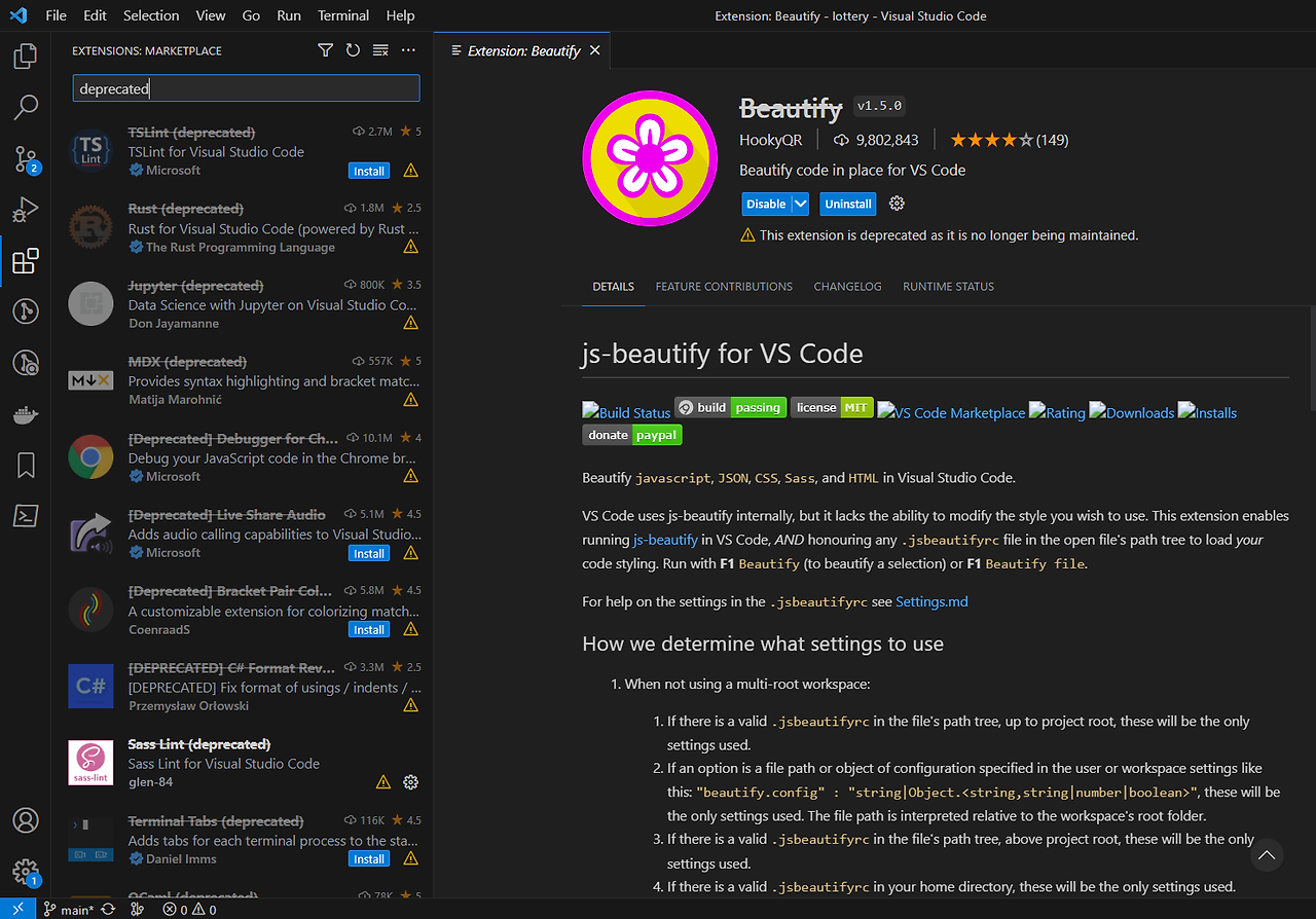 Vs-code extension error: This extension is deprecated as it is no longer being maintained, deprecated๋ VS ์ฝ๋ ํ๋ฌ๊ทธ์ธ ๋ณด๊ธฐ