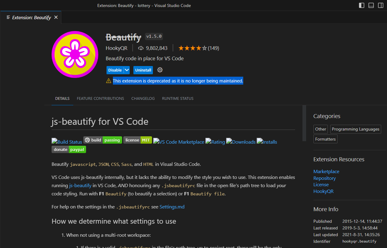 Vs-code extension error: This extension is deprecated as it is no longer being maintained, deprecated๋ VS ์ฝ๋ ํ๋ฌ๊ทธ์ธ ๋ณด๊ธฐ