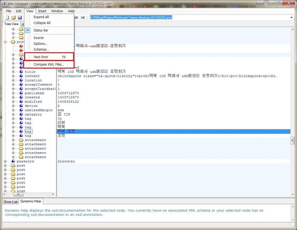 XML ๋ฌธ์ ๋น๊ต : View๋ฉ๋ด์์ Compare XML file๋ฅผ ์ ํํ๋ฉด ๋ ๊ฐ์ XML ๋ฌธ์์ ์ฐจ์ด๋ฅผ ๋น๊ตํฉ๋๋ค