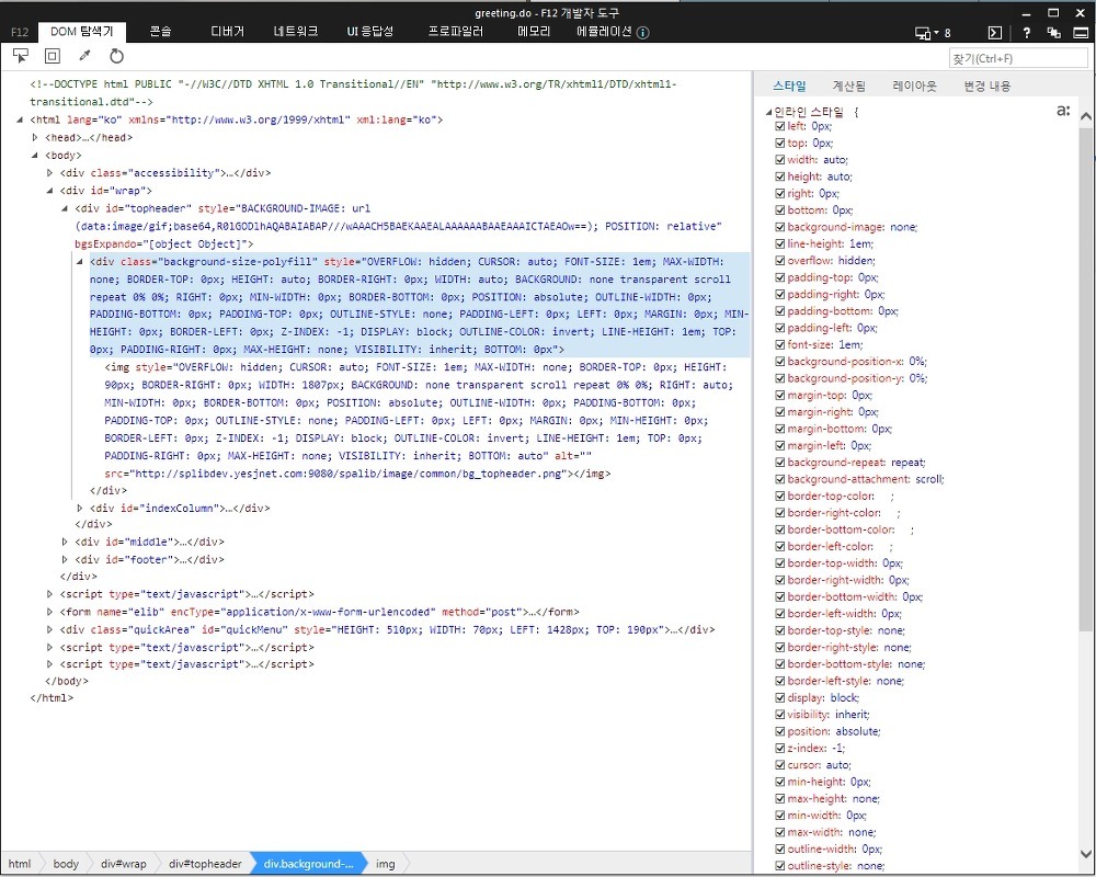 ์์ ๊ฒ์ฌ๋ก ์ฐ์ด๋ณด๋ฉด IE8๋ชจ๋์์๋ background-size๋ ์ธ์์ ํ์ง ๋ชปํ๋ค.