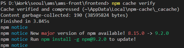 PS D:\Work\seoul\ams\ams-front\frontend> npm cache verify